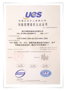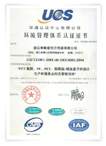 申新包裝環(huán)境管理系認(rèn)證證書